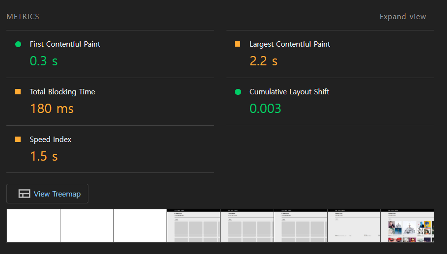 Speed Index는 비교적 증가했는데, 아마도 서버에서 데이터를 가져오는데 소요되는 시간 때문에 늘어난 것 같다.