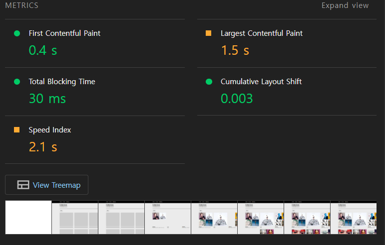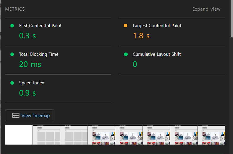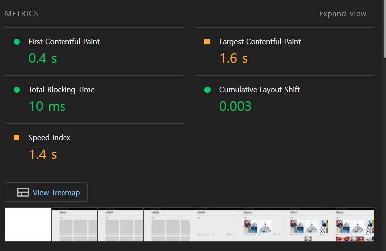 여러번 측정해본 결과 평균적으로 LCP가 1.6s로 나타나며, 0.2s 정도 개선되었다.